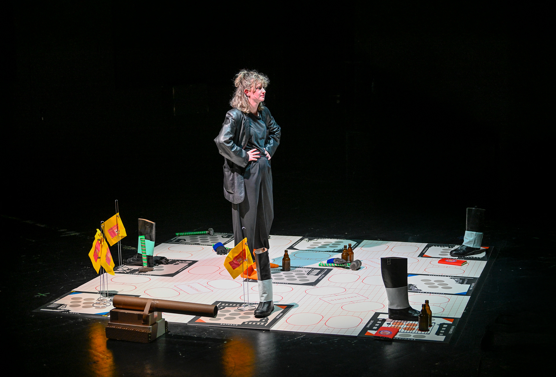 Ausstattung und Spieldesign für den B:CLUB "SPIELFELD" (2024) der Bürger:Bühne des Staatsschauspiel Dresdens.